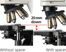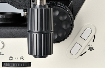 通过添加物镜转换器隔件,物台对焦高度可以从标准位置下降20 mm,便于频繁的样品更换。可以改变物台手柄的高度,以确保手感舒适。可以使用重新聚焦机构锁定载物台高度,方便样本更换后重新对焦。载物台涂有高耐久性耐刮陶瓷涂层。