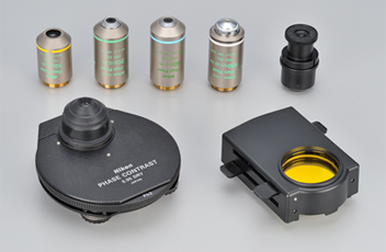 紧凑的落射荧光附件利用专利的噪声终止器机制,并允许以很高的清晰度和亮度捕获弱荧光样品。两个落射荧光附件:CI-FL(可安装4个滤光块)和D-FL(可安装6个滤光块)可供选择。可提供用于落射荧光成像的高性能物镜,包括CFI Plan Apochromat Lambda系列和CFI Plan Fluor系列。
