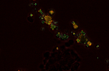 Sodium urate crystals, Sensitive color polarizing, CFI Plan Fluor 40X