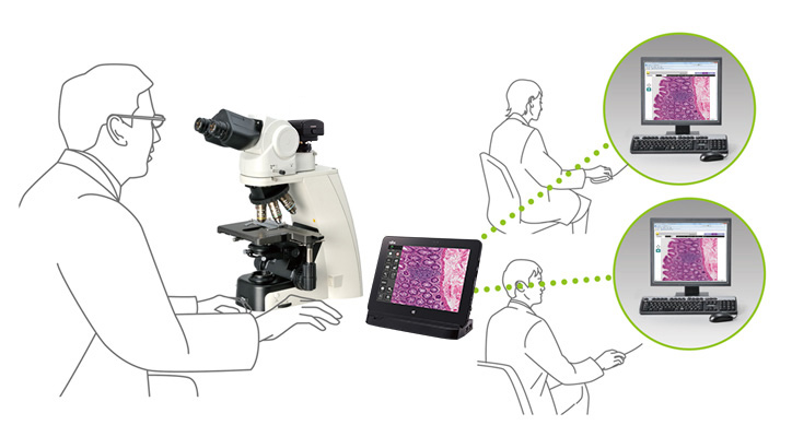 观察期间,在显微镜主机上简单点击图像捕获按钮,数码摄像机即可以捕获标本图像。DS-L4摄像机控制单元的触摸屏上的观察方法图标可为每种观察方法提供最佳的摄像机设置。此外,ECLIPSE Ci系列显微镜可以通过DS-L4连接到远程PC,以实现远程观看,在线教育和远距离协作。