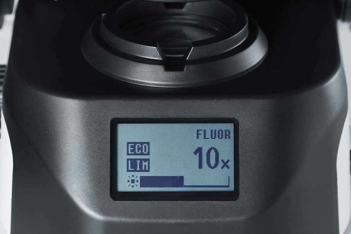 无需改变观察姿态,使用显微镜底部的显示屏即可迅速轻松地确认放大倍率和亮度设置。