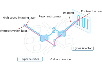 | Full frame scanning | 60 fps (256 x 256 pixels) 30 fps (512 x 512 pixels) 15 fps (1024 x 1024 pixels) |