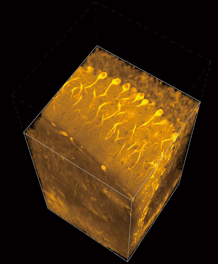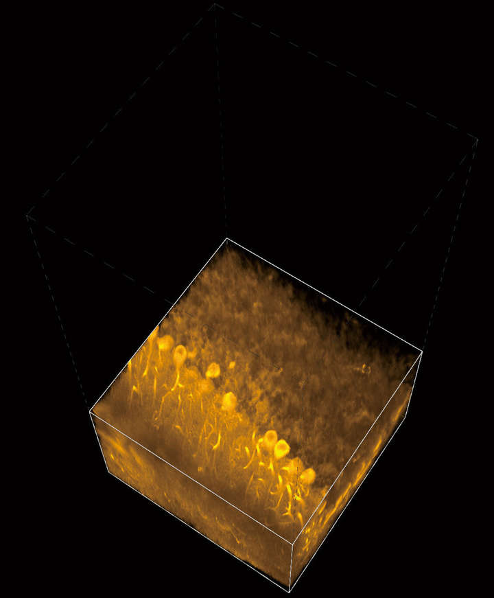 采用2K共振扫描模式920 nm波长激发的Z-stack成像。能看到深处高信噪比的单个神经细胞。