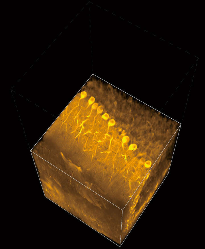 高达2K x 2K的多光子共振扫描能对样品中的深层区域进行高分辨率成像。使用高灵敏度探测器可抑制信号损失进而高效捕捉来自深层区域的荧光。
