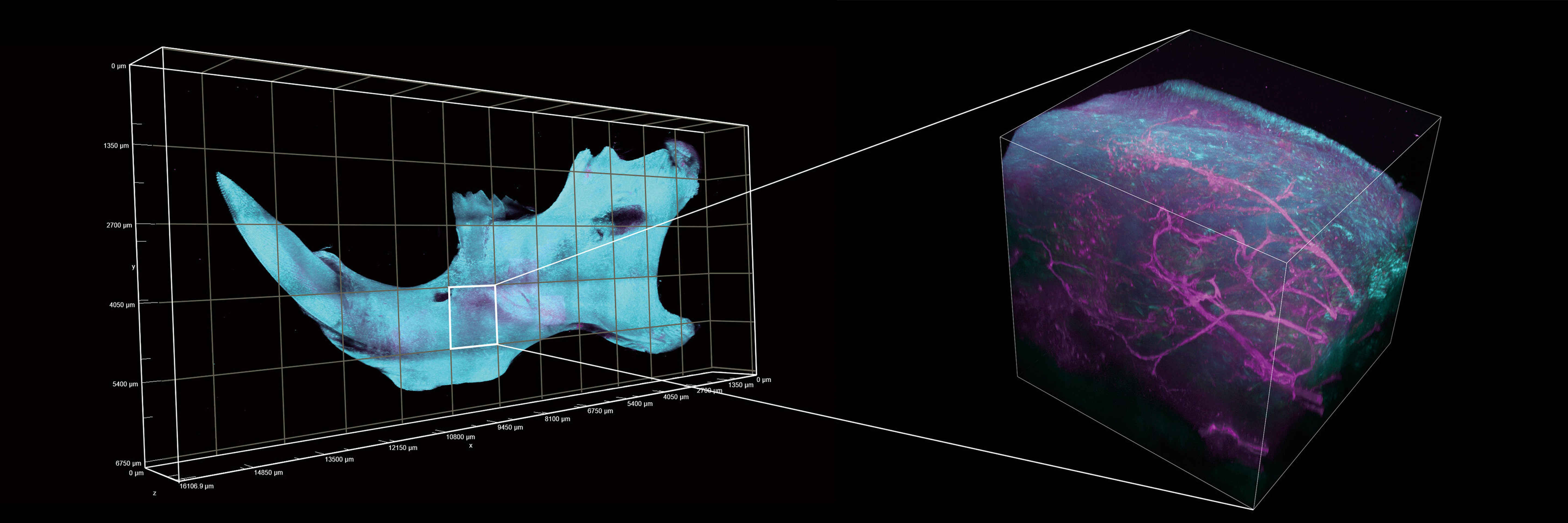 鼠颚的SHG图像,血管:Alexa Fluor 488