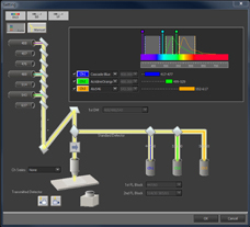 提供了用于分析和拆分所获得的光谱图像的许多功能,而普通染料和荧光蛋白的光谱图已被预编程。