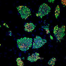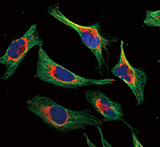 Anti-Nanog antibody (Cy3), anti-Oct3/4 antibody (Alexa Fluor® 488) and DAPI localized in cell nuclei