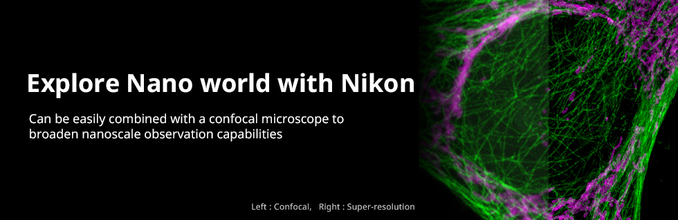 可以使用共焦显微镜系统(如A1+ 或 C2+)同时配置N-SIM E,并且可以在超分辨率成像和共聚焦成像之间轻松切换成像方法。