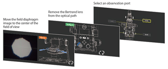 一系列内置传感器检测并传递显微镜各个组件的工作状态信息。当您使用计算机获取图像时,所有状态信息将记录在元数据中,确保您能够轻松调出采集条件和/或检查设置错误。 此外,内置相机允许用户查看后焦平面,便于校准相差环和DIC的消光十字。它还为TIRF等应用提供了一种安全的激光器校准方法。