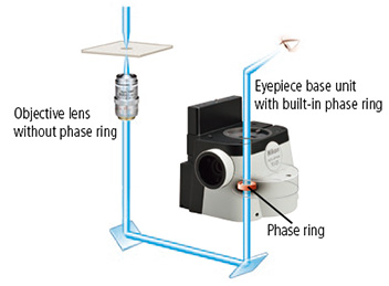 电动外部相差系统使用户能够结合荧光成像和相差观察,而无需使用相差专用物镜,从而不会影响荧光的传输。例如,非常高N.A.值的液浸物镜都可以用于相差观察成像。使用这种外部相差系统,用户可以轻松地将相差观察与其他成像方式相结合,包括弱荧光成像,如全内反射和光镊应用等。