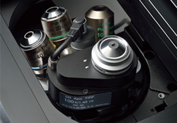 完美对焦系统(PFS)的检测器部分已经从物镜转盘分离,以减少物镜转盘上的机械负载。这种全新的设计还能最大程度减少热传递,有助于创造更加稳定的成像环境。因此,电动Z 轴电机的耗电量也有所降低。这些机械上的重新设计赋予成像平台极高的稳定性,使其非常适合单分子成像和超高分辨率应用。