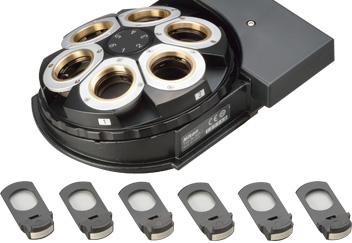 显微镜设计中集成了往复式切换,用以控制荧光滤块转盘和物镜转盘等装置。这些切换仿真手动转动上述装置的感觉,实现直观控制。这些往复式切换中还可融合其他功能,确保单个切换可以操作多个相关装置。例如,荧光滤块转盘的往复式切换不仅可以转动转盘,而且在用户按压切换时还可以开关荧光光闸。此外,还可以对这些切换编程,以操作发射滤片转盘和外部相差单元。
