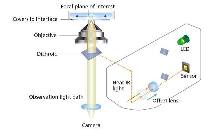 PFS兼容各种应用,从塑料培养皿的常规实验到单分子成像和多光子成像均可适用。它还兼容各种波长,从紫外线到红外线,这意味着它能够用于多光子和光镊应用。