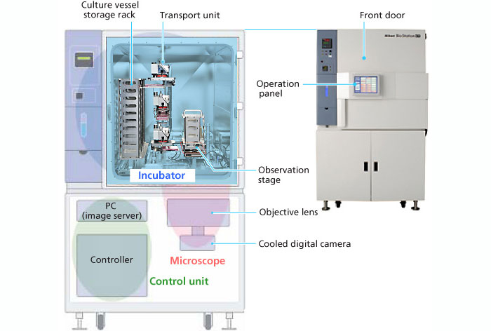 在细胞的培养和观察中,常规设备对有价值的细胞系造成压力,有可能被污染,并可能导致细胞活力降低。 BioStation CT根据用户配置的时间表,在同一个培养箱中,根据最佳条件自动进行从培养到观察细胞的操作。 此外,培养条件记录与图像数据一起保存,用于重要样品的无忧培养。