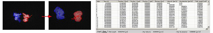 对象的二维跟踪利用对象随时间的阈值,并产生诸如速度,加速度和距指定原点的距离等度量。跟踪模块提供自动跟踪和手动跟踪方法。