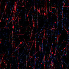 An in vitro preparation of fluorescently-labeled microtubules (tetramethylrhodamine and Alexa 647) and tubulin binding proteins (Alexa 488) was imaged in three different wavelengths using the H-TIRF illuminator and the gradation ND filter. Incident angles can be automatically adjusted for multiple wavelengths.
